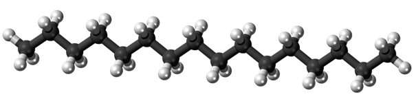 In most greases, the base oil is a long chain alkane, such as cetane, shown below.